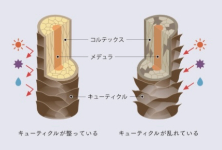 - キューティクルの毛羽だち、1本一本が広がりの原因に。